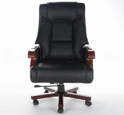 优质进口牛皮(半牛皮),内制高级海绵,带实木扶手加皮,汽动升降,倾仰功能,实木五星脚配尼龙轮。